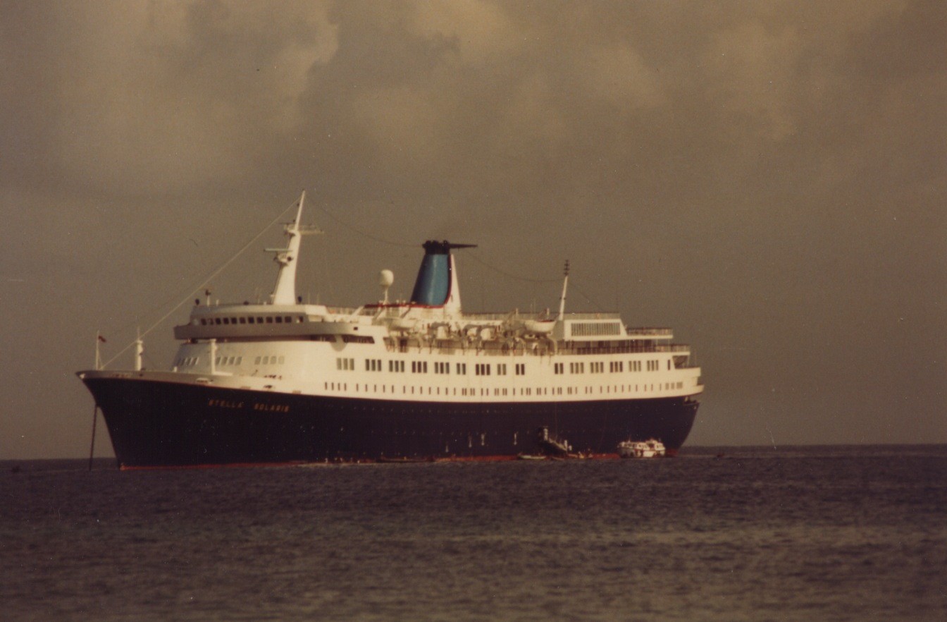 Departing at around 5 pm in Galveston, Texas on December 21st, the voyage commenced with two days at sea and stopping at Georgetown in the Grand Caymen Islands, and spending Christmas Day at Jamaica (Ocho Rios). It was then onto St. Thomas, Philipsburg in St Maarten on the 28th, the next day in Iles des Saintes, Wednesday the 29th in Guadeloupe, New Years eve in Oranjestad, in Aruba preceded by a day of sea travel. New Years day the ship tied up at Cartagena in Columbia until 1 pm. She made transit to the Panama Canal on the 2nd arriving in Balboa at around 3 pm. With 2 days spent at sea the vessel made an arrival at Playa del Carmen in Mexico. Another day at sea was made before finally arriving at Galveston Texas in the morning hours of 7th of January in 1983. Beginning on that very same day, and then again on January 27th, and February 16th, she embarked on three 10 day Panama Canal cruises from Galveston to Curacao visiting nearly the same ports as the Christmas/New Years cruise but also including Cozumel, Montego Bay they making her way through the Panama Canal on day 6 and 7 before a day at sea. It was among the fist of many visits that she would make to the San Blas Islands, before this voyage ended in Curacao. Until March of that year the STELLA SOLARIS would embark on a total of six 10 day panama canal cruises. There were three southbound one way cruises from her semi permanent home of Galveston, Texas to Curacao and the first one taking place on the January 7th, leaving at the usual planned time of 5PM out of her semi permanent home of Galveston, Texas. From there it was visiting the ports of Cozumel, Mexico, George Town, Montego Bay, the transit through the panama canal, San Blas Islands, Cartegena, Oranjestad and arriving on the 17th at Willemstad, Curacao.