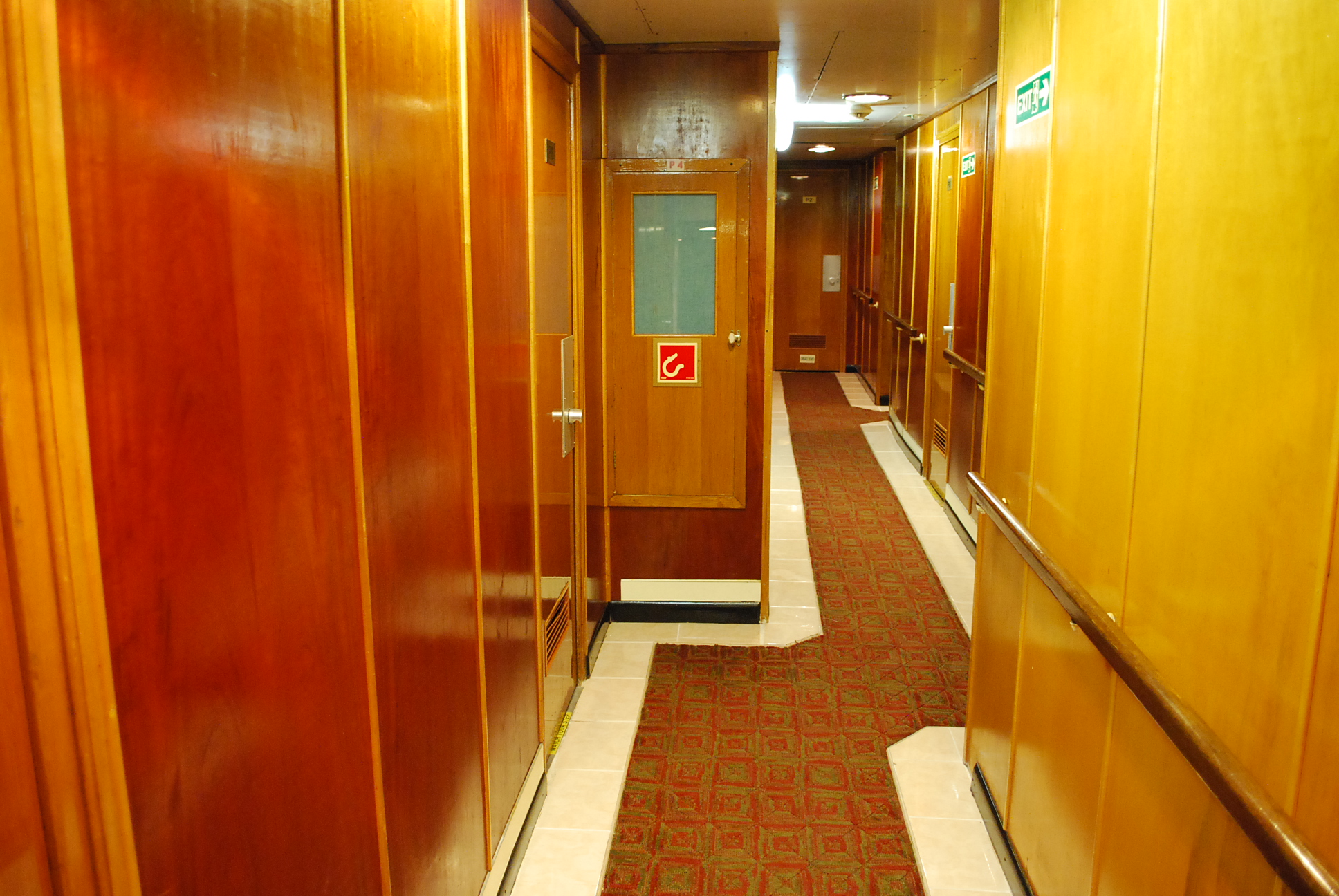 Outside the Photo Gallery one is greated with gorgeous wood paneling from the aft promenade stairtower.
